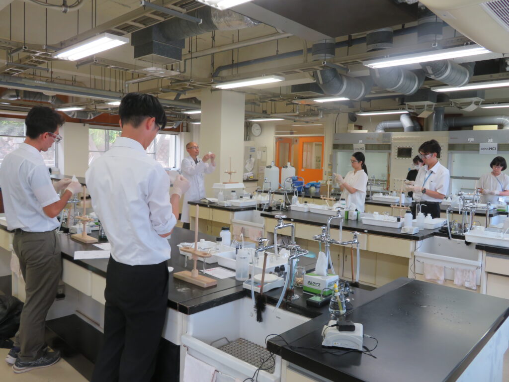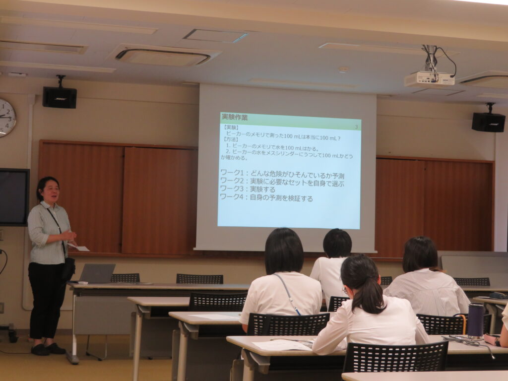 八王子市教育委員会主催の夏季教員理科研修が本校において開催されました。市内小中学校の教員12人を対象に、全員共通の「安全教育」及び選択科目の「化学」「物理」を実施しました。