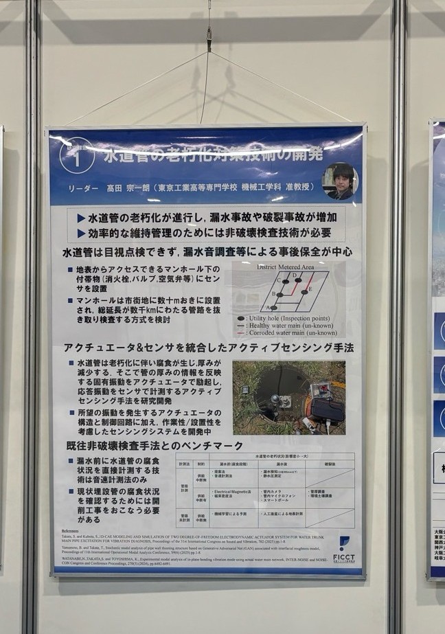 2025年10月30日(木)・31日(金)にインテックス大阪(大阪市住之江区)で開催された「建設技術展2025近畿」において、機械工学科髙田准教授の受託研究である、JST研究成果展開事業「共創の場形成支援プログラム 住民と育む未来型知的インフラ創造拠点」のブース内ポスターを展示しました。