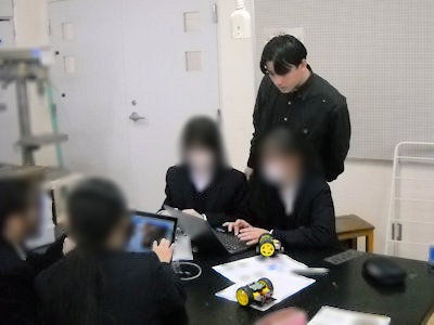 本校情報工学科では、社会実装プロジェクトと呼ばれる取組や、社会実装を軸とした卒業研究テーマの一つとして、中学生や小学校6年生向けのプログラミング学習教材、教育手法について検討し、出前授業を実施しています。